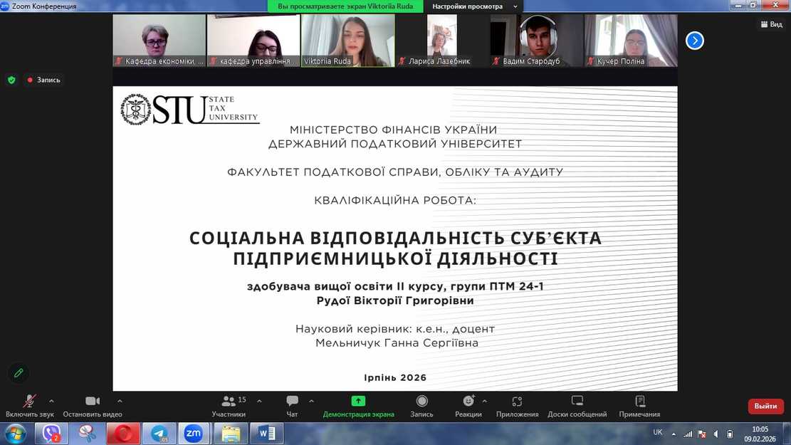 9 лютого на кафедрі управління та бізнес-адміністрування відбувся захист кваліфікаційних робіт здобувачів другого (магістерського) рівня вищої освіти за спеціальністю 076 «Підприємництво та торгівля».