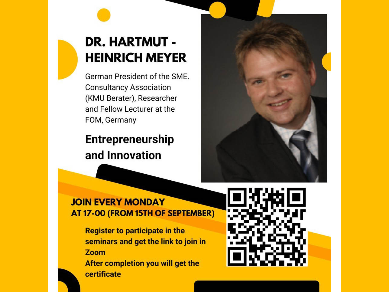 В Державному податковому університеті триває курс лекцій з підприємництва та інновацій від професора Dr. Hartmut Heinrich Meyer (FOM University Germany), президента SME Consultancy Association (KMU Be...
