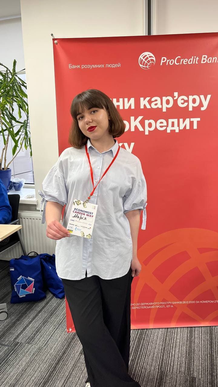 Марія Марченко (спеціальність D1 «Облік і оподаткування») працювала офлайн — живі зустрічі, нетворкінг, запитання без фільтрів і максимум практичних інсайтів.