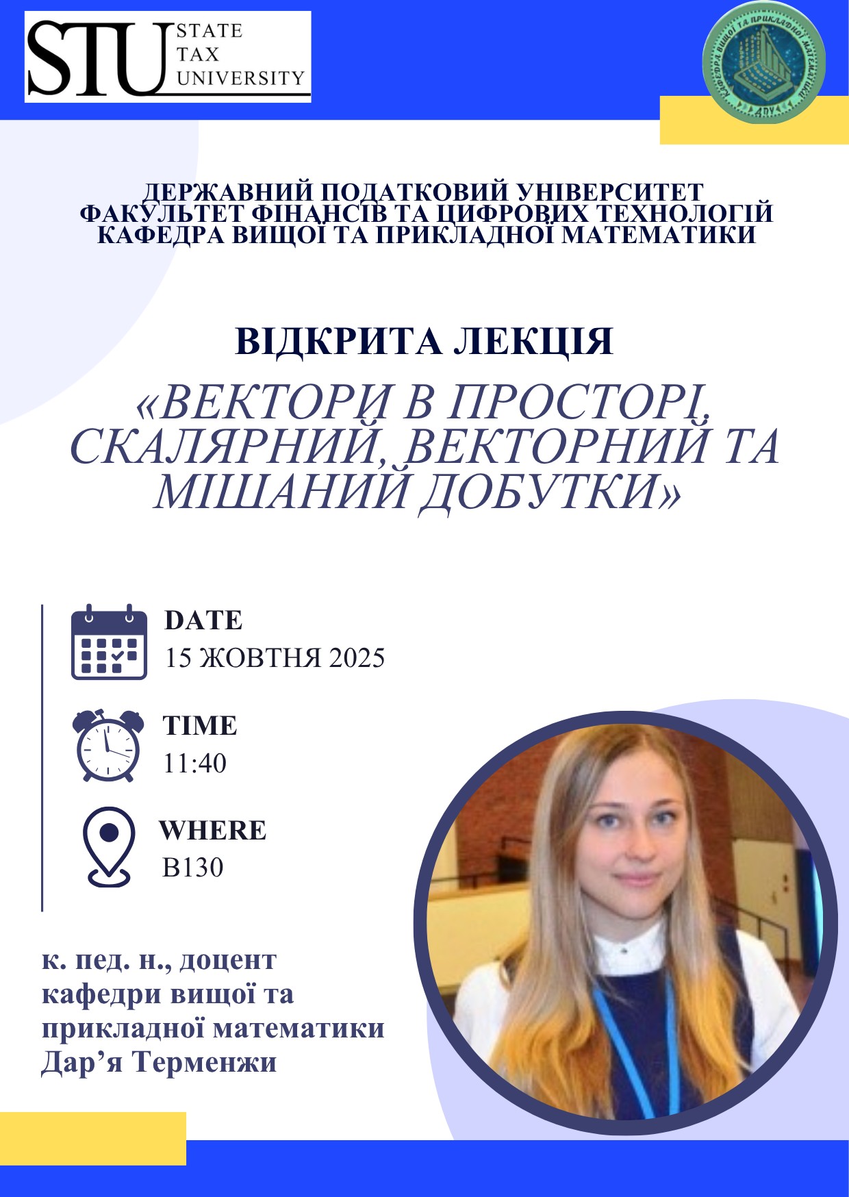 06.10.2025 за ініціативи кафедри управління та бізнес-адміністрування та факультету податкової справи, обліку та аудиту відбудеться гостьова лекція на тему: "Оцінка ризиків організації (в т.ч. корупці...
