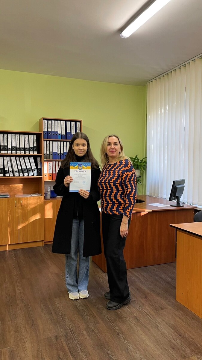І місце - Сахно Оксана Олександрівна, група ОБП-24-1, з доповіддю «Екологічні податки як інструмент декарбонізації економіки» під науковим керівництвом канд. екон. наук, доцента кафедри адміністрування податків Тучак Т.В.