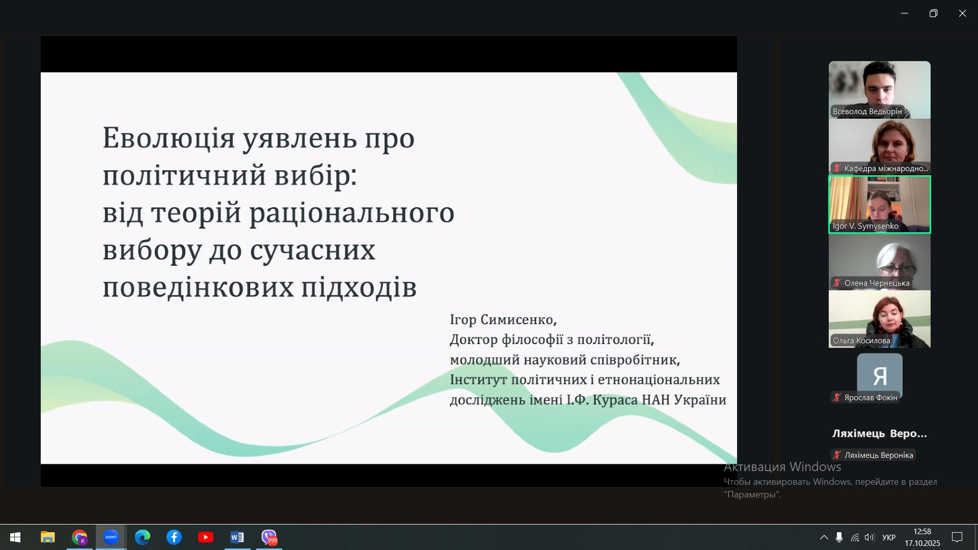Тема доповіді: «Еволюція уявлень про політичний вибір: від теорій раціонального вибору до сучасних поведінкових підходів».