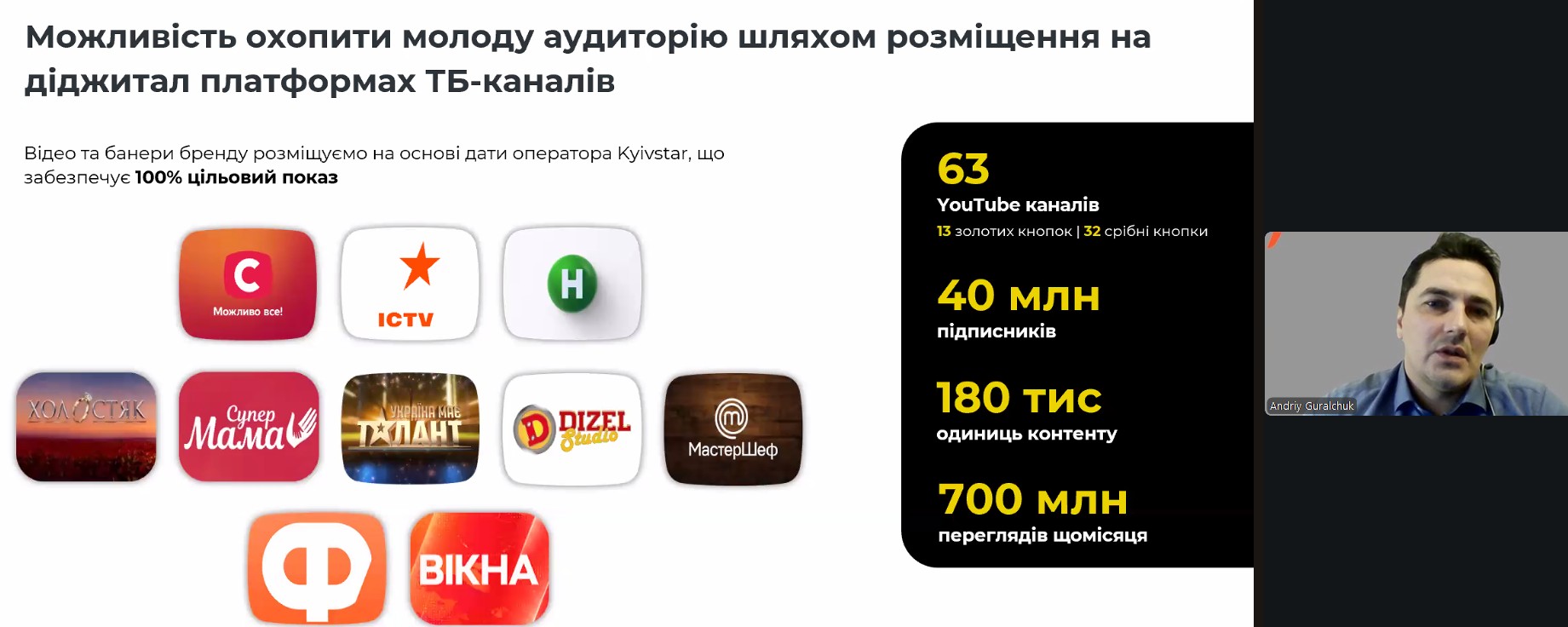 Здобувачі мали можливість переконатися, що у сучасному світі інформаційного перенасичення ефективна медійна стратегія – це не просто план розміщень, а конкурентна перевага. На вебінарі вони мали можливість заглянути за лаштунки реальної стратегії однієї з провідних українських медіаагенцій – Media Systems, що понад 20 років працює на ринку рекламних послуг. Розглянуто наступні питання: з чого починається розробка стратегічного медіаплану, які основні елементи формують ефективну стратегію, як адаптувати підхід під конкретну категорію або бізнес-задачу, як виглядає робоча ринкова пропозиція – з прикладом медійної стратегії, які інструменти, метрики та підходи сьогодні застосовують в агентстві.