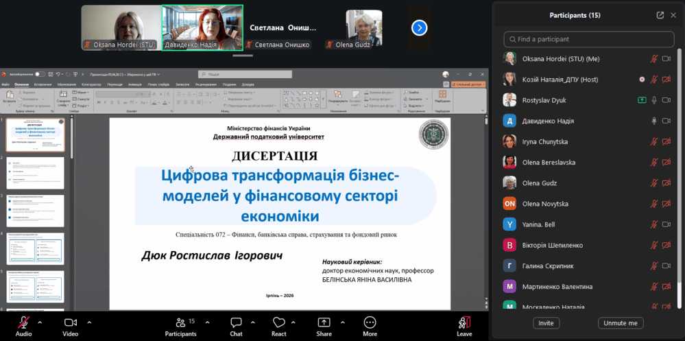 08 квітня 2026 року на міжкафедральних семінарах кафедр публічних фінансів і фінансових ринків та технологій Державного податкового університету відбулися попередні розгляди (передзахисти) дисертаційних досліджень здобувачів третього (освітньо-наукового) рівня вищої освіти.