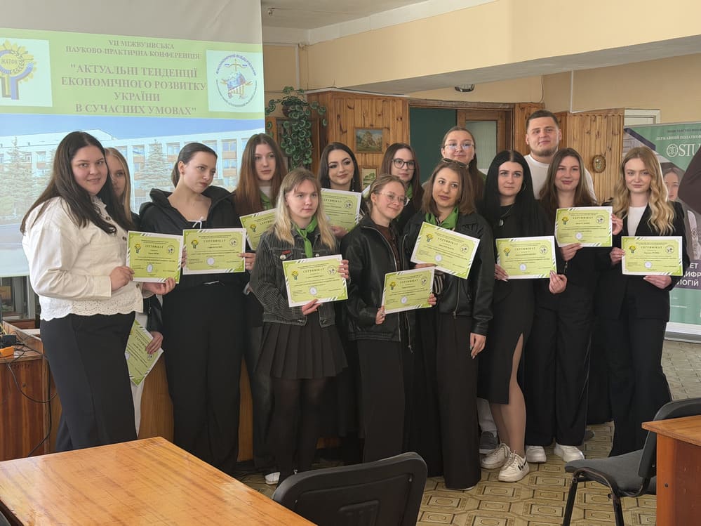 2 квітня 2026 року здобувачі вищої освіти Державного податкового університету факультету фінансів та цифрових технологій Вероніка Резнік, Юлія Руденко, Карина Ярова під керівництвом доцента кафедри публічних фінансів Галини Скрипник взяли активну участь у VII міжвузівській науково-практичній конференції «Актуальні тенденції економічного розвитку України в сучасних умовах», що відбулася на базі Агротехнічного фахового коледжу у місті Житомир.