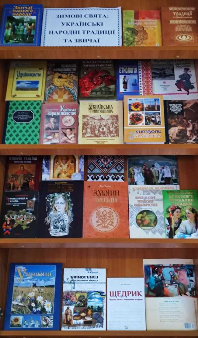 Про величезну роль в історії українства віковічних традицій, пісень, вірувань розкаже книжкова виставка «Зимові свята: українські народні традиції та звичаї» (абонемент навчальної літератури, кім. 372 корпусу С), на якій представлена література, присвячена зимовому святковому циклу та різдвяно-новорічній обрядовості українців.