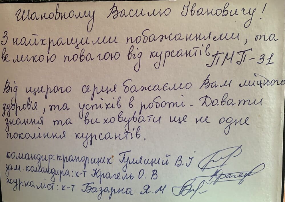 Світлини, що збереглися з тих часів, мають особливу цінність. Вони взяті з альбомів, подарованих курсантами своєму улюбленому викладачу з дарчим написом: «З найкращими побажаннями та великою повагою від курсантів». У цих фотографіях - щирі емоції, вдячність і пам’ять про час, який став визначальним. Ці світлини - жива історія про своєрідну точку відліку, до якої подумки повертаєшся знову і знову.