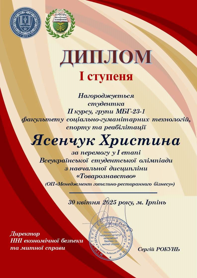 - Диплом 1 Ясенчук Христини