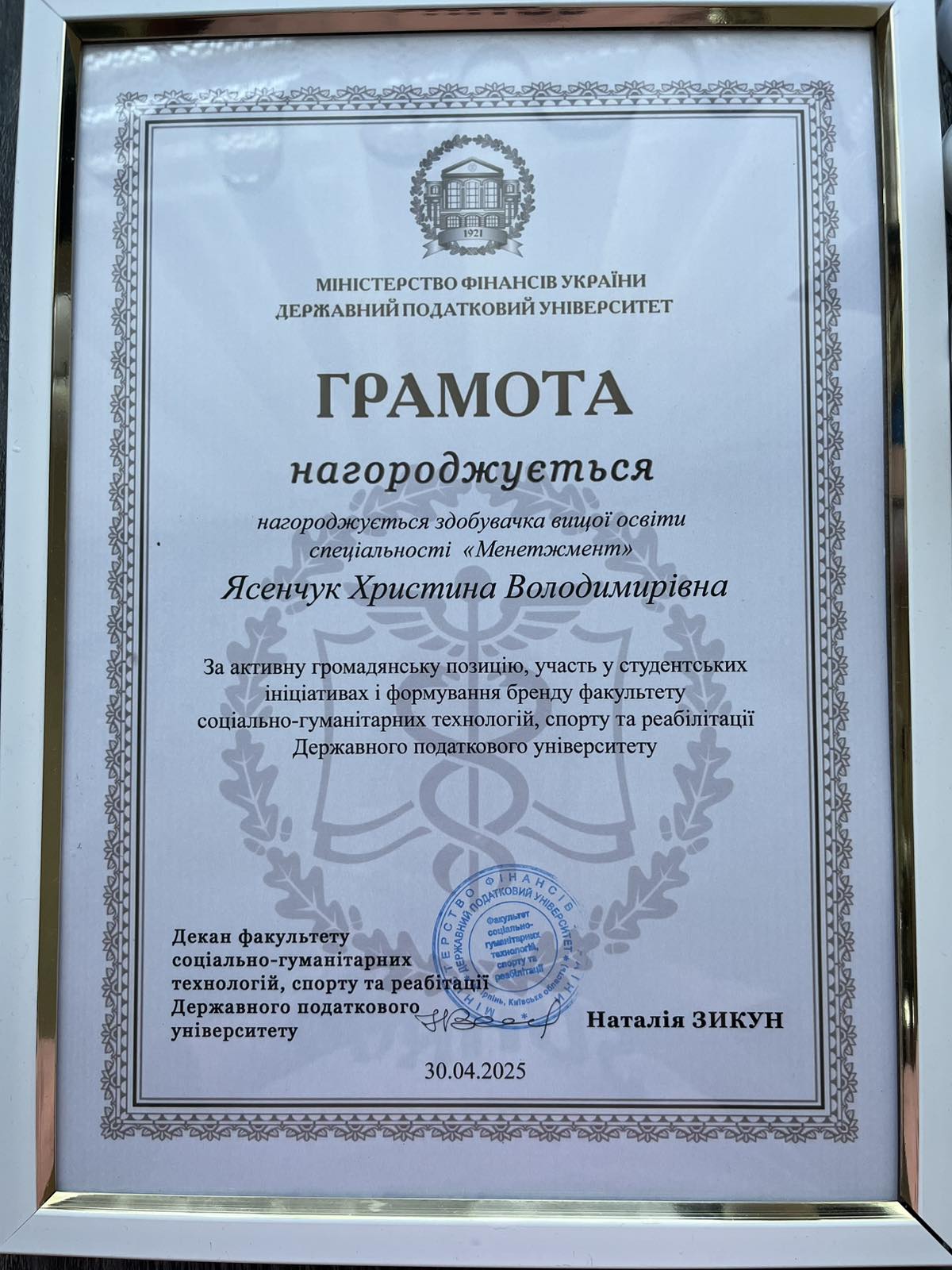 - Грамота 2 Ясенчук Христина