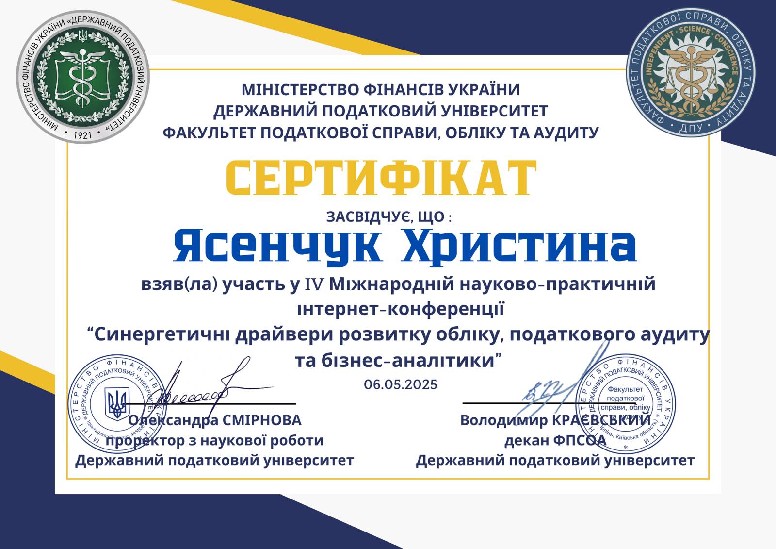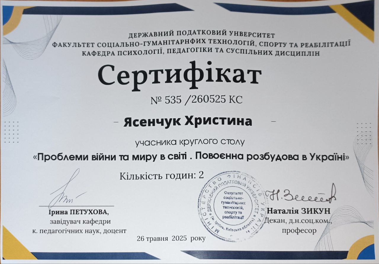 - Сертифікат 1 Ясенчук Христина