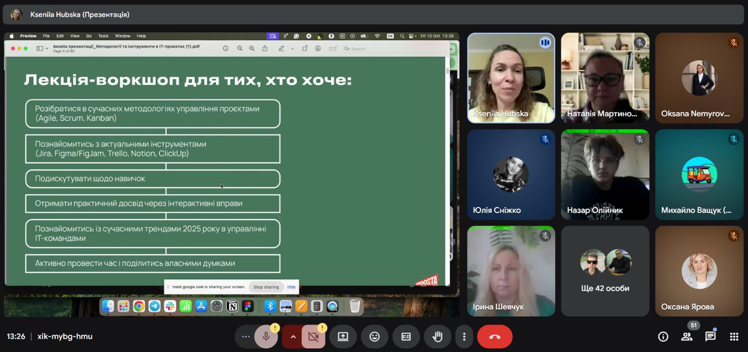10 жовтня 2025 року відбулася міжнародна гостьова лекція на тему «Methodologies and tools in IT projects» для викладачів кафедри вищої та прикладної математики та здобувачів другого (магістерського) р...