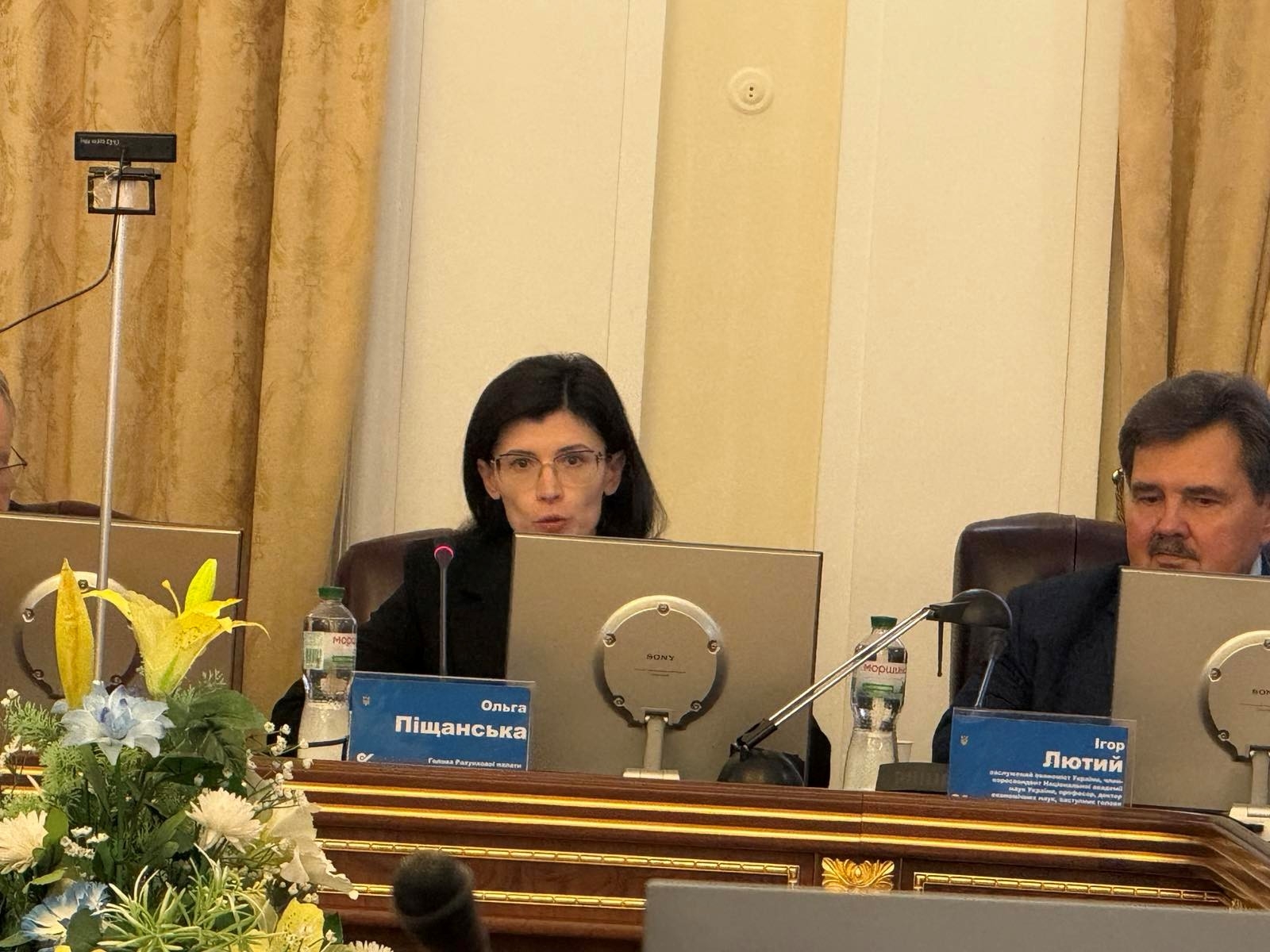 Окрім цього, Ольга Піщанська озвучила звернення від імені Рахункової палати до НАНУ, Міністерства освіти і науки України Наукового комітету Національної ради України з питань розвитку науки і технологій задля їх залучення до створення Єдиного глосарія правових термінів у галузі фінансів і публічного контролю для використання при підготовці проєктів нормативно-правових актів, а також у діловому й науковому середовищі України.
