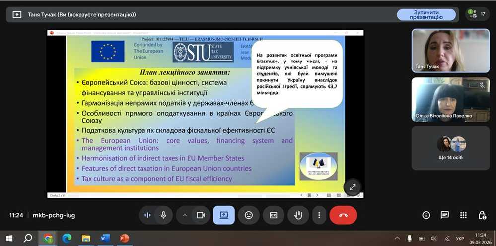 On March 9, 2026, as part of the Jean Monnet Module project "Tax Interest through Educational, scientific and communicative outreach focused on Ukrainian society" (Grant Agreement No. 101125984 – TIEU), a guest lecture was held at the National University of Water and Environmental Engineering (Rivne).