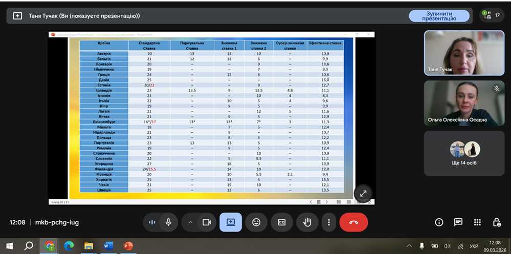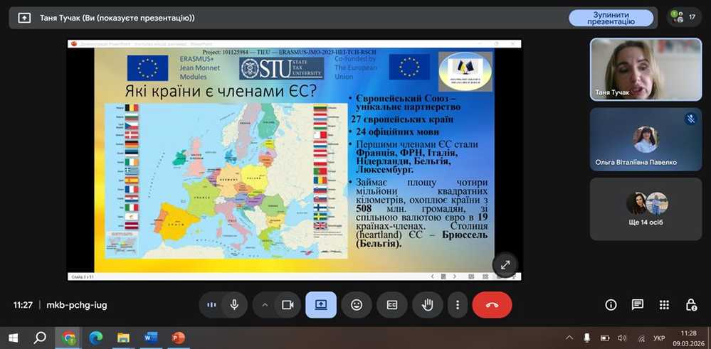 The lecture, titled "European Approaches to Tax Policy: Harmonization and Challenges," was delivered by Tetiana Tuchak, PhD in Economics, Associate Professor of the Department of Tax Administration at the State Tax University.