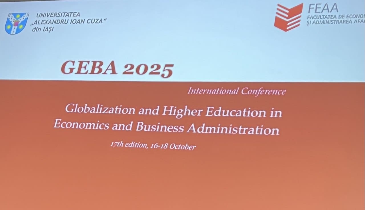 Міжнародна конференція GEBA 2025 (Globalization and Higher Education in Economics and Business Administration) відбулася 16–18 жовтня 2025 року в Університеті імені Александру Іоана Кузи в Яссах (Румунія). Захід організував Факультет економіки та адміністрування бізнесу цього університету.