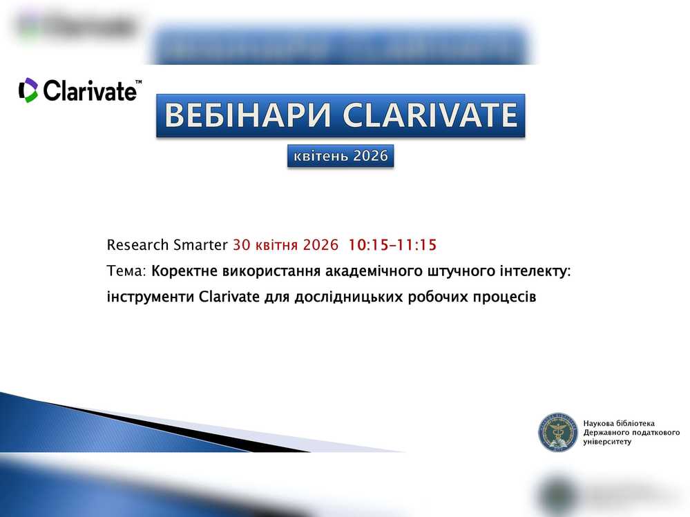Запрошуємо вас на вебінар від Clarivate на тему: «Коректне використання академічного штучного інтелекту: інструменти Clarivate для дослідницьких робочих процесів»