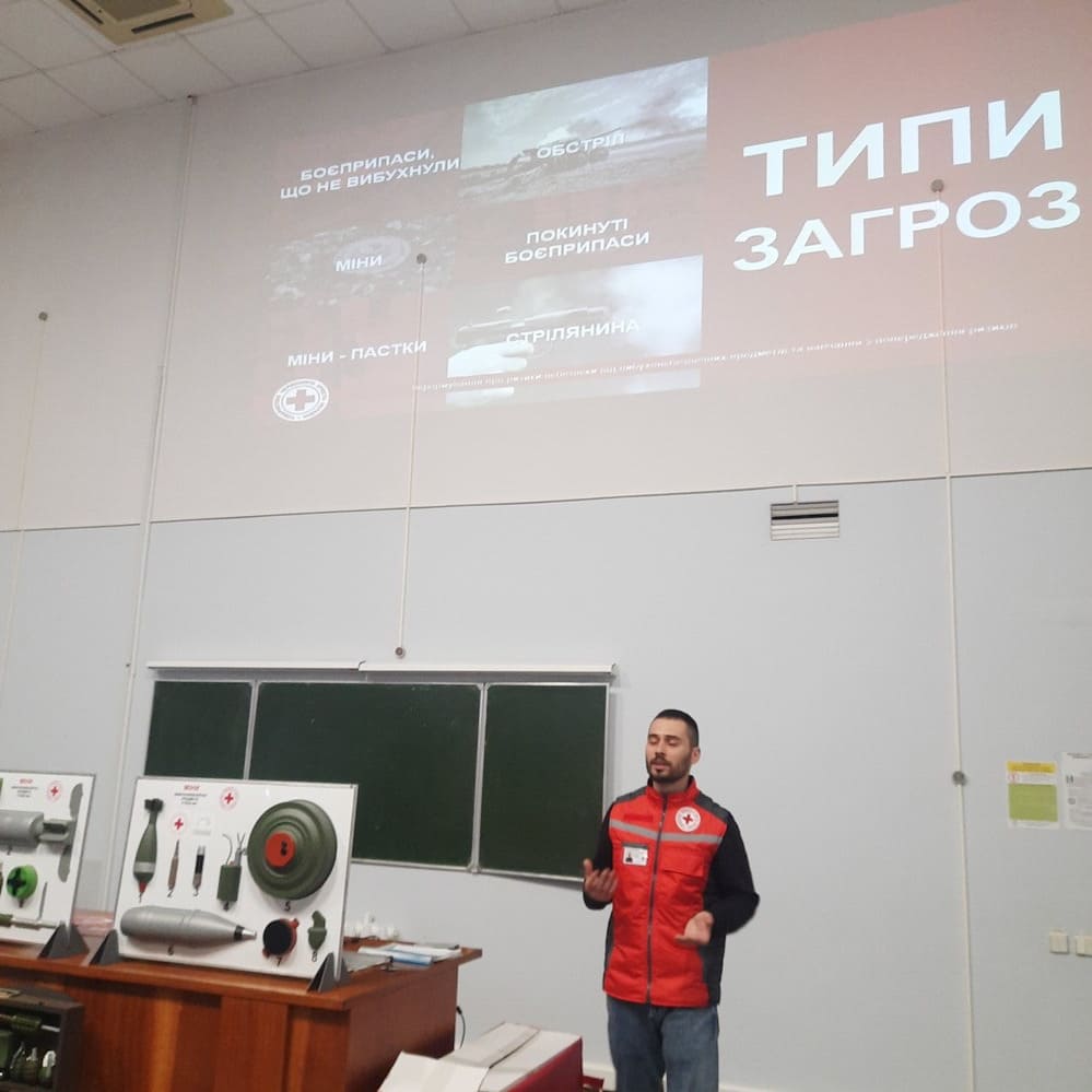 31 березня 2026 року об 11.40-13.00 год. відбулося заняття фахівця з мінної безпеки Українського Червоного Хреста Гусєва Олексія для навчальних груп ПДБП 25-1, ПДБП 25-2, ПБПД 25-1, ПБПД 25-2, ПБПД 25-3, корпус D ауд. 605.