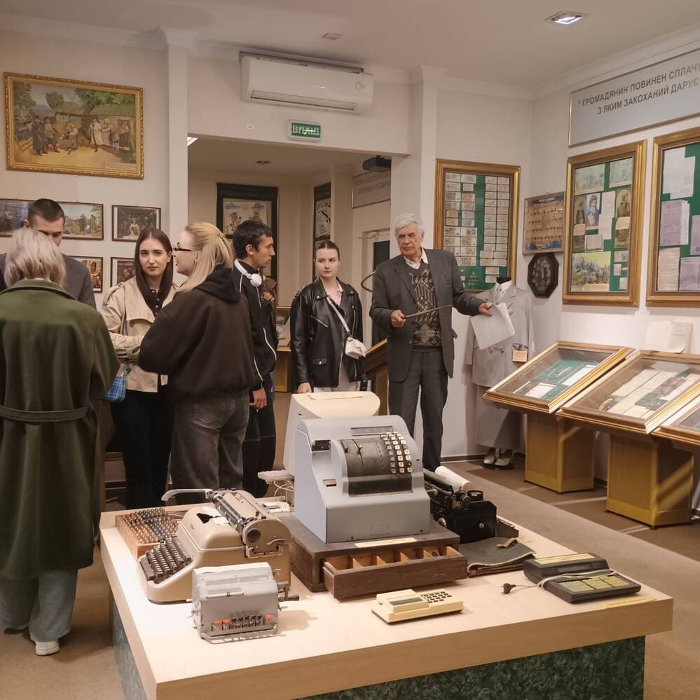 Під час відвідування музею здобувачі освіти ознайомилися з основними етапами становлення та розвитку податкової системи на українських землях: від періоду Київської Русі до сучасного етапу функціонування податкових органів. Експозиція музею включає унікальні історичні документи, грошові знаки різних періодів, матеріали щодо розвитку фінансових інституцій, а також зразки обчислювальної техніки, що використовувалася у діяльності податкових органів.