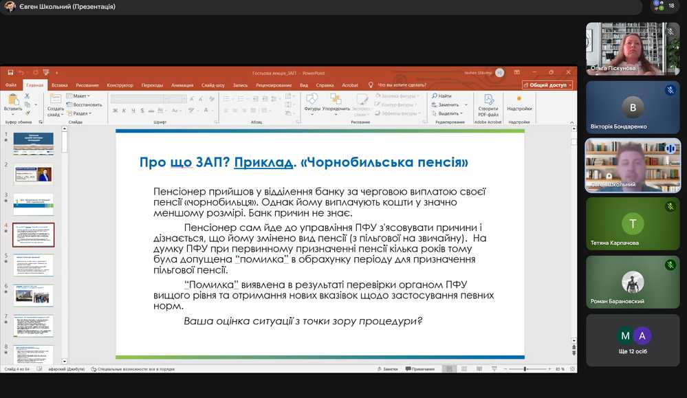 Не стала винятком і гостьова лекція на тему «Загальна адміністративна процедура», яка відбулася 13 квітня в рамках дисципліни «Адміністративне право». Лекцію для студентів першого курсу освітньо-професійної програми «Правоохоронна діяльність» провів Євген Школьний, кандидат юридичних наук, експерт з питань публічної адміністрації Центру політико-правових реформ.