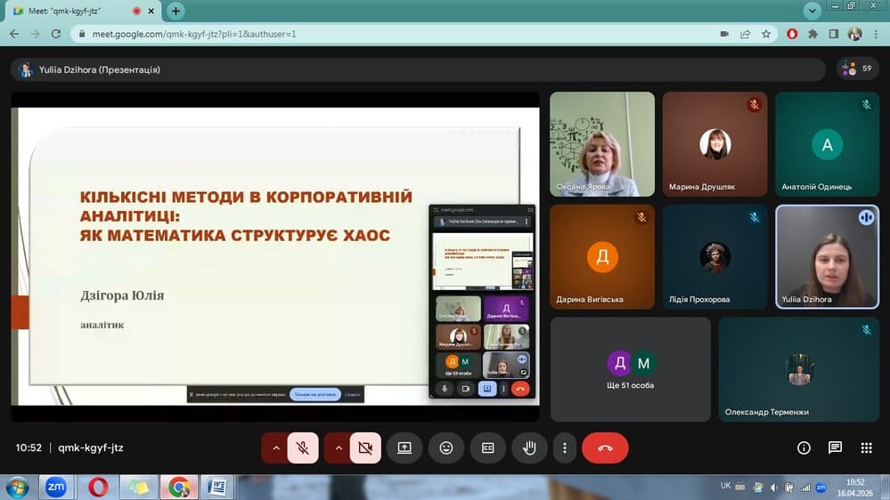 У межах конференції відбулося пленарне засідання, під час якого учасники представили змістовні та актуальні доповіді. Тематика виступів охоплювала широкий спектр питань: застосування математичних методів у корпоративній аналітиці, розвиток цифрових фінансів і Big Data, використання штучного інтелекту в управлінні, роль математичного моделювання в економіці, а також інноваційні підходи до навчання та міждисциплінарні дослідження.