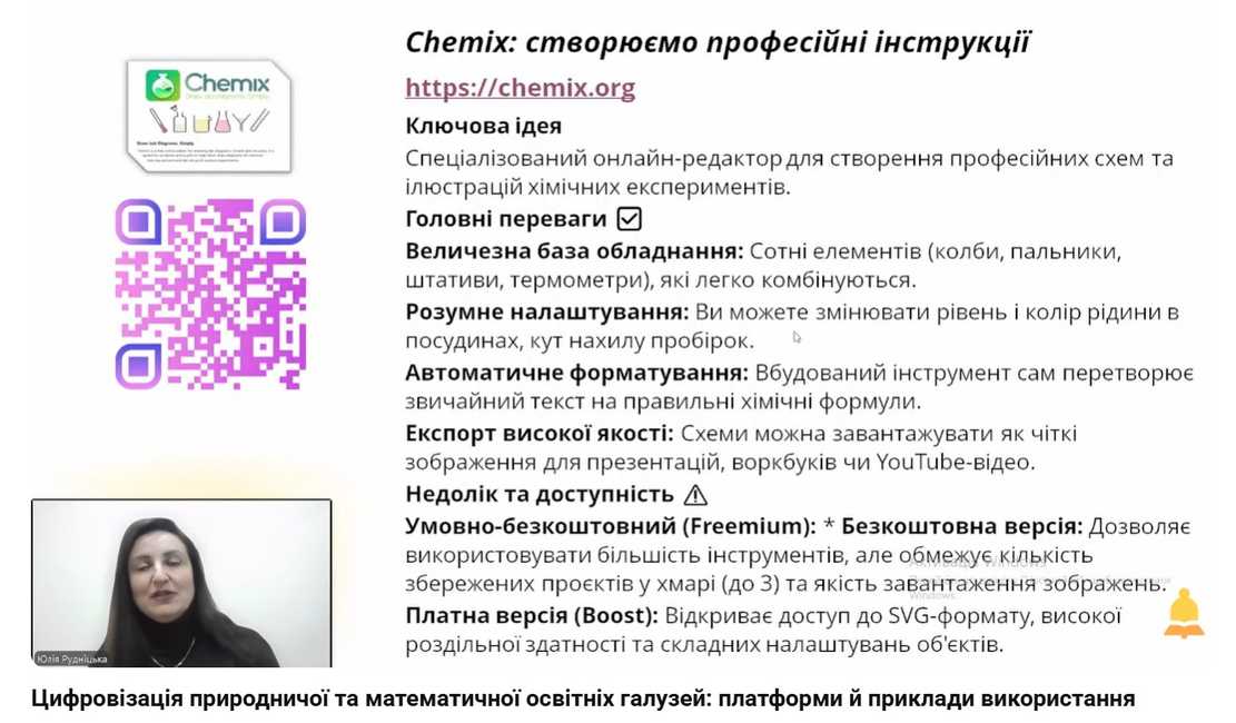 Спікеркою заходу виступила Юлія Рудніцька, яка ознайомила учасників із сучасними цифровими платформами та інструментами, що сприяють підвищенню наочності, інтерактивності та мотивації здобувачів освіти під час вивчення математики й природничих дисциплін.
