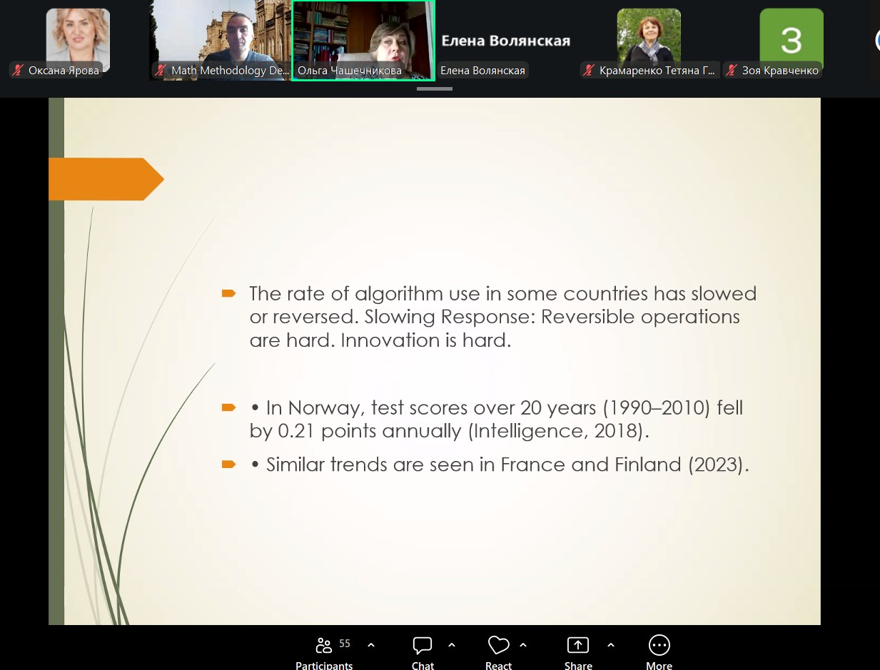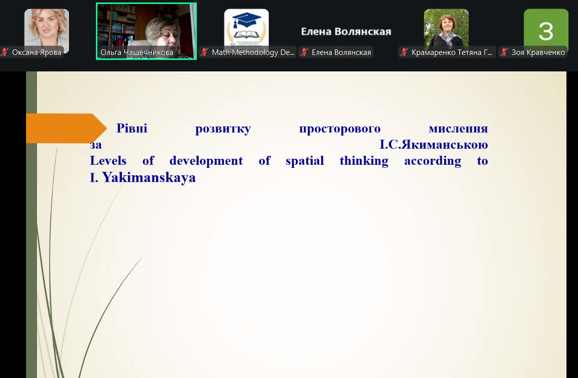 Під час семінару було порушено актуальні питання співвідношення цифрових технологій у навчанні математики та розвитку просторового мислення здобувачів освіти. Особливу увагу доповідачки приділили викликам, які постають перед сучасною математичною освітою в умовах цифровізації, а також окреслили можливі шляхи досягнення балансу між використанням інноваційних інструментів і формуванням фундаментальних когнітивних умінь.