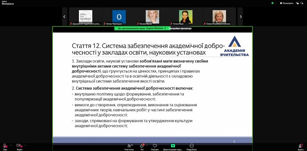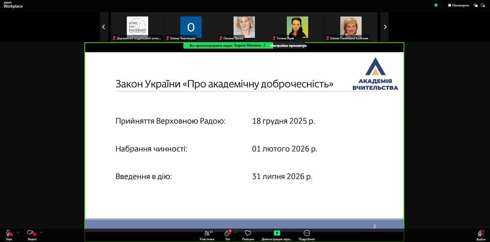 07 квітня 2026 року відбувся вебінар на тему «Освітній процес у світлі нових вимог Закону України «Про академічну доброчесність»