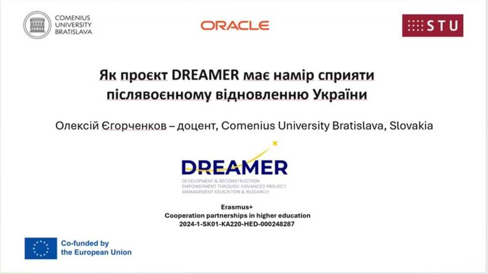 - Олексій Єгорченков, доцент Comenius University в Братиславі (Словаччина) розказав про те , як проект DREAMER має намір сприяти післявоєнному відновленню України; https://dreamer.priestoroveplanovanie.sk/