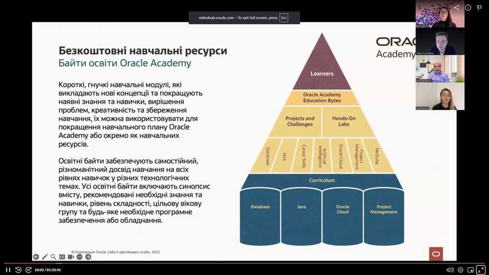 За пропозицією керівництва Oracle Academy акредитований інструктору цієї програми к.е.н., доцент кафедри комп’ютерних та інформаційних технологій і систем Редич О.В. поділився своїм досвідом використання хмарних сервісів Oracle у навчанні та наукових дослідженнях із учасниками форуму .