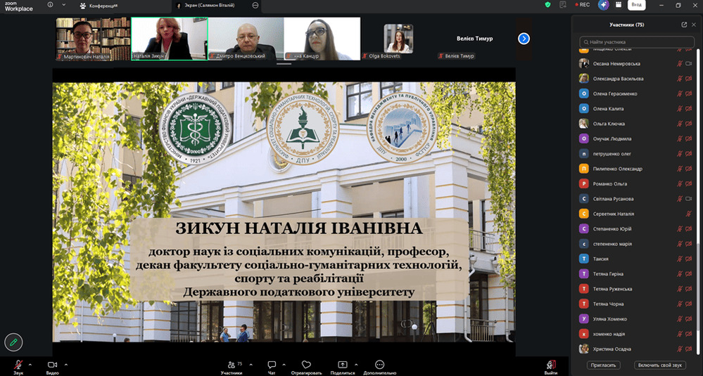 З вітальним словом до учасників звернулися проректор з науково-педагогічної роботи та соціального розвитку Державного податкового університету Дмитро Венцковський, декан факультету соціально-гуманітарних технологій, спорту та реабілітації Наталія Зикун, які наголосили на важливості науково-практичного діалогу в умовах невизначеності.