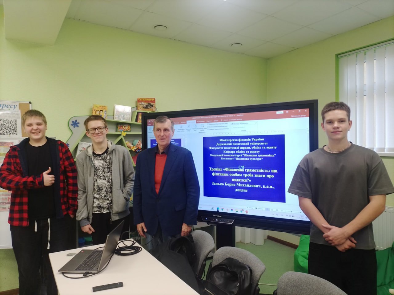 Метою заходу було формування у здобувачів освіти практичних знань і навичок з основ оподаткування, а також підвищення рівня обізнаності щодо ролі податків у розвитку держави. Учасники тренінгу ознайомилися з видами податків, які сплачують фізичні особи, порядком їх нарахування та сплати, а також із можливостями відповідального фінансового планування.