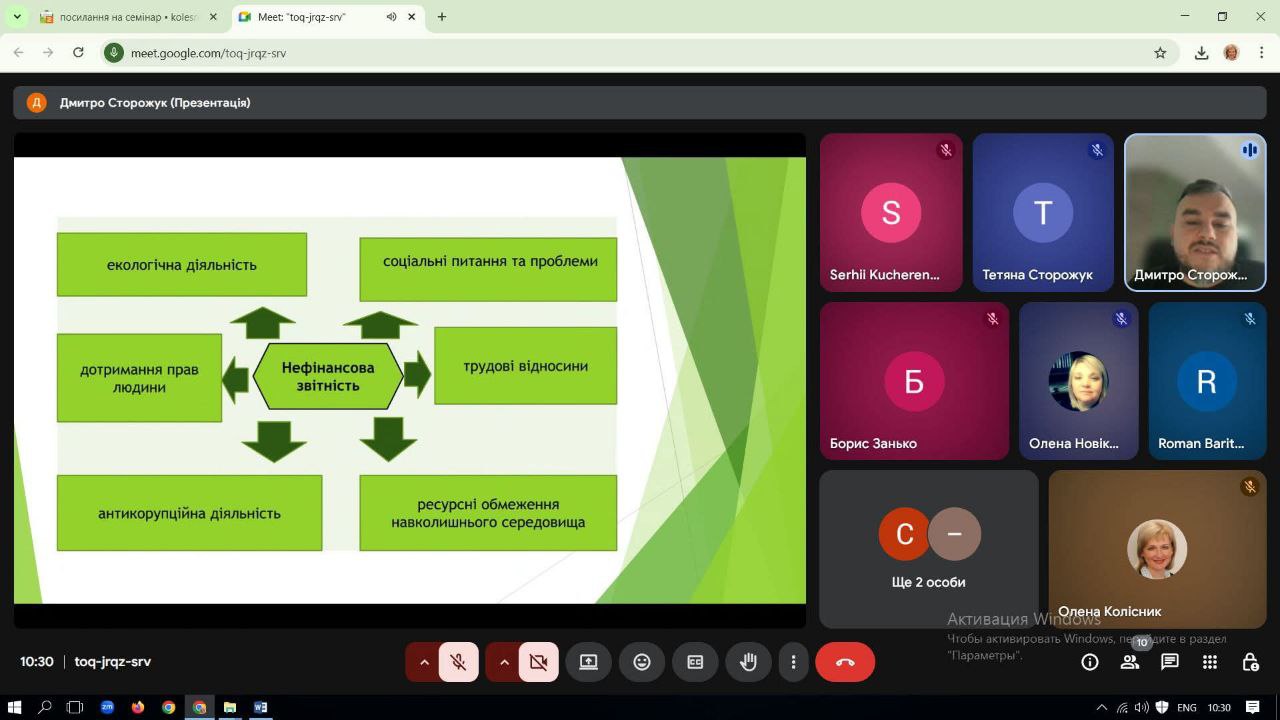 У ході дискусії учасники наголосили на необхідності вдосконалення методичних підходів до ведення обліку та складання звітності, орієнтованих на вимоги екологічної, соціальної та управлінської відповідальності бізнесу (ESG).