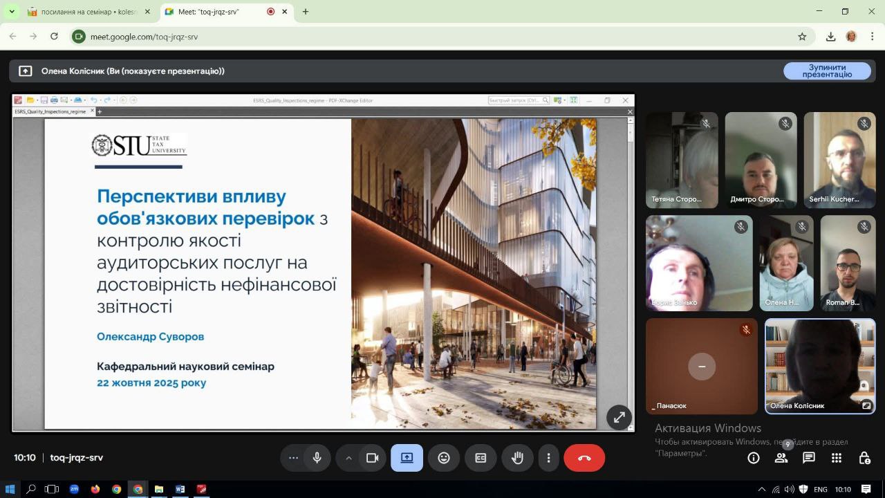 22 жовтня 2025 року кафедрою обліку та аудиту був проведений науковий семінар на тему: «Перспективи розвитку обліково-аналітичного забезпечення управління суб’єктів господарювання в умовах сталого розвитку».