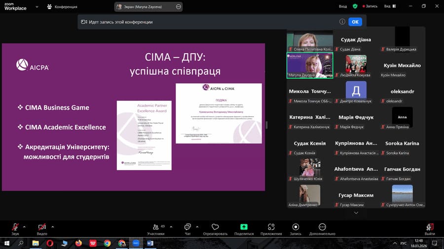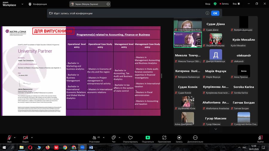 18 березня 2026 року кафедрою обліку та аудиту була організована зустріч із Зайцевою Мариною Анатоліївною — координаторкою освітніх проєктів СІМА.
