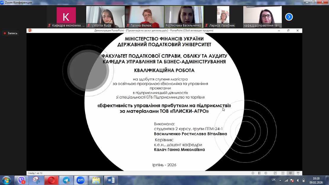 9 лютого на кафедрі управління та бізнес-адміністрування відбувся захист кваліфікаційних робіт здобувачів другого (магістерського) рівня вищої освіти за спеціальністю 076 «Підприємництво та торгівля».