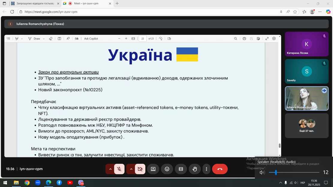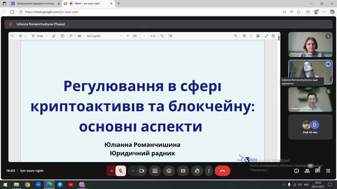 28 листопада 2025 року відбулася гостьова лекція менеджера взаємодії з європейськими інституціями Групи Компаній Reply Юліанни Романчишиної на тему «Регулювання ринку криптовалют в глобальному контексті».