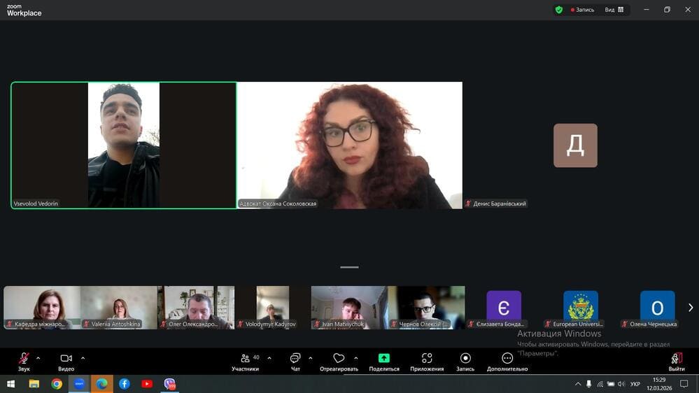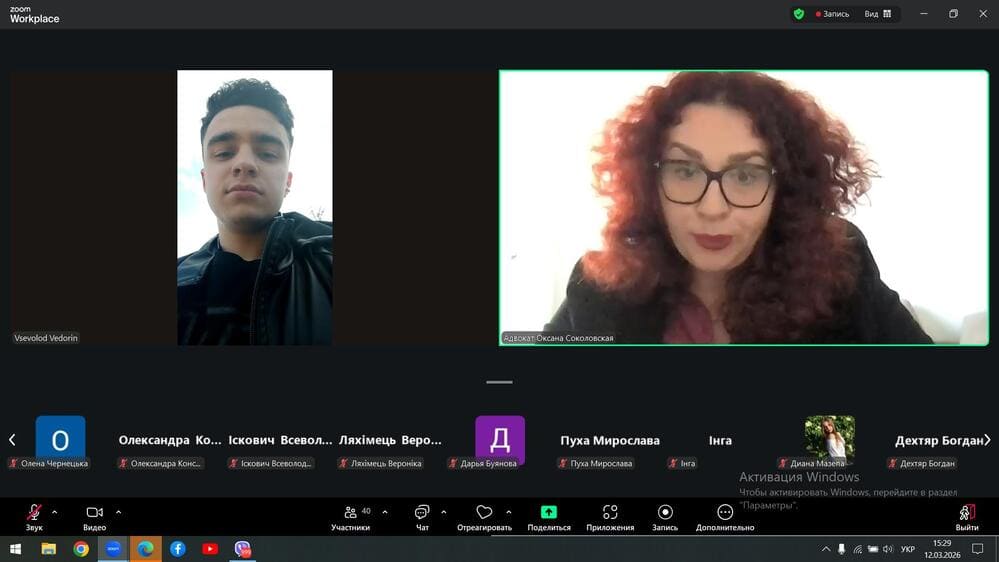 12 березня 2026 року в онлайн-форматі на платформі Zoom відбулася гостьова лекція адвоката, представниці Національної асоціації адвокатів України в Ізраїлі Оксани Соколовської на тему: «Правова система та адвокатура Держави Ізраїль: історія становлення, сучасна модель функціонування та порівняльний аналіз з Україною».