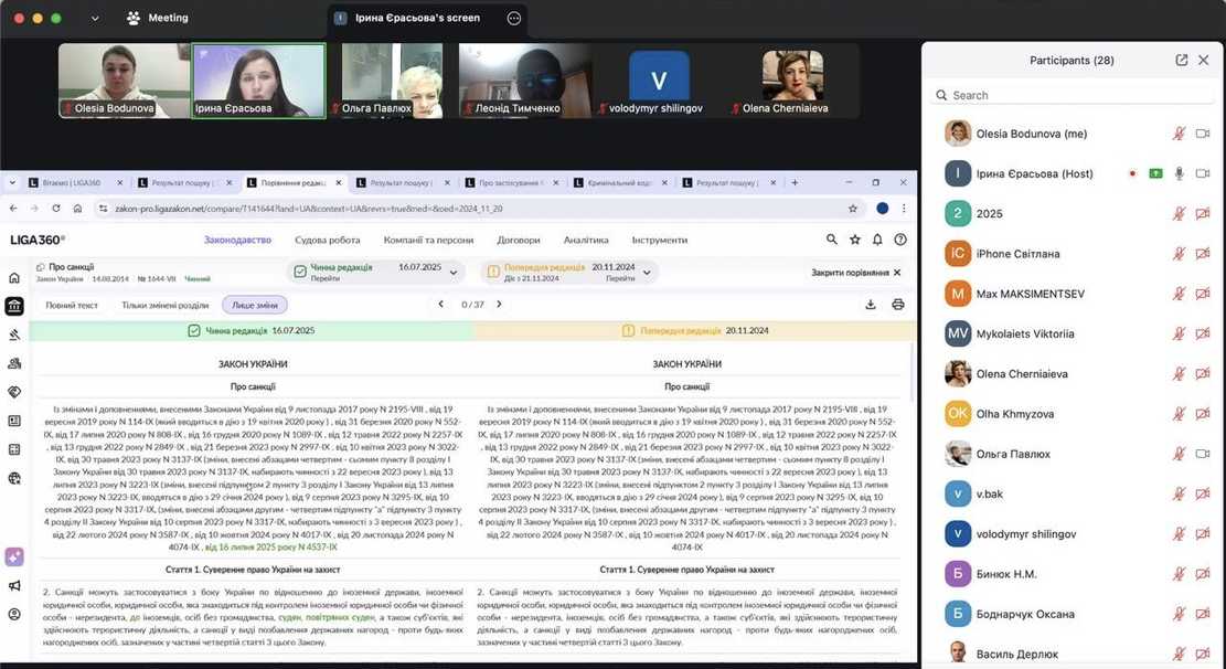 Навчання було організоване для викладачів Навчально-наукового інституту права. У форматі тренінгу Ірина Єрасьова представила основні можливості програмного забезпечення ЛІГА:ЗАКОН, детально ознайомила з функціоналом платформи й продемонструвала, як ефективно використовувати її у викладацькій діяльності. Практична частина була побудована на основі кейсів, наданих самими викладачами.