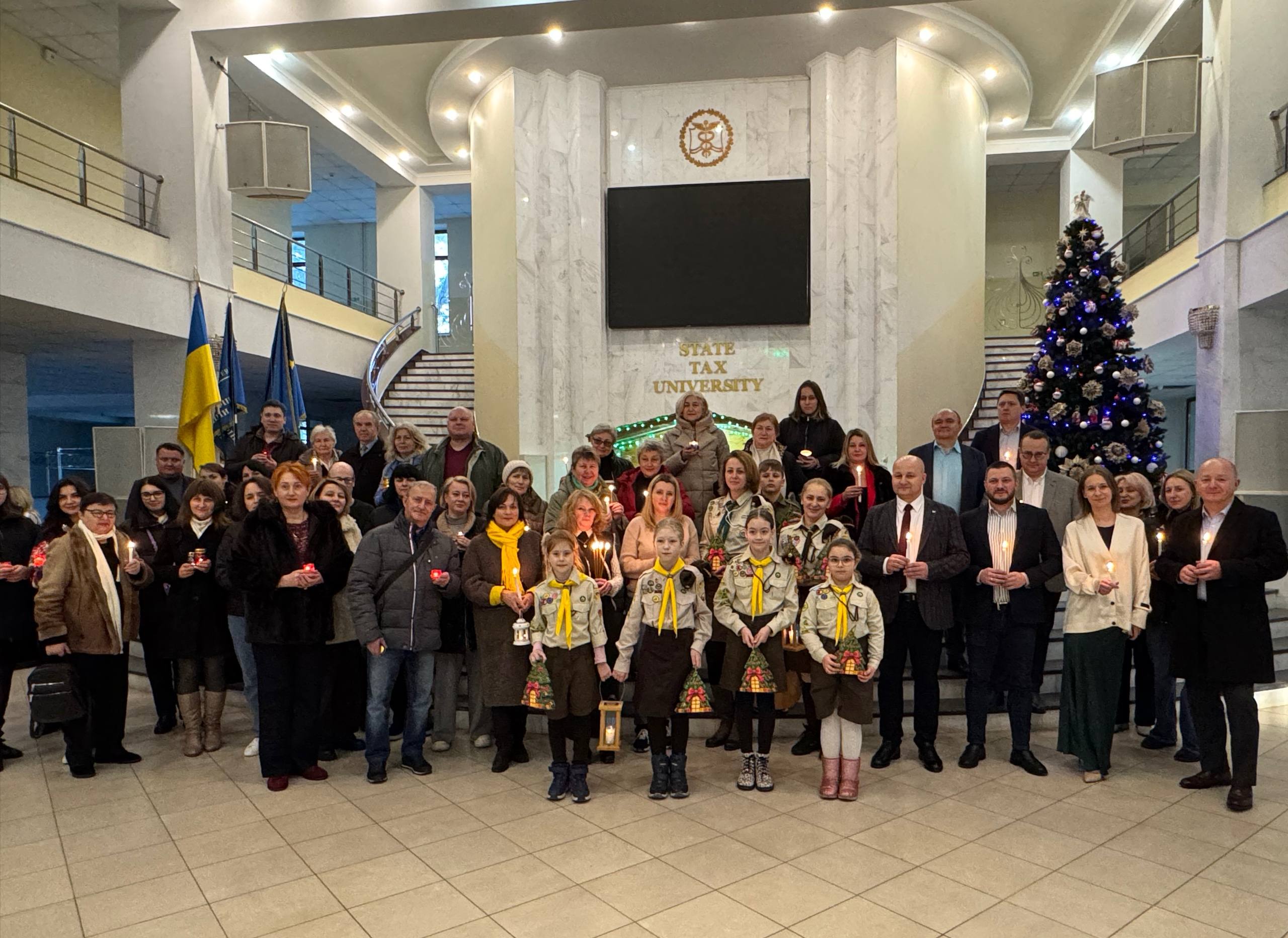 Напередодні Різдва до Державного податкового університету завітали представники пластової станиці Ірпеня, щоб передати Вифлеємський вогонь миру — символ світла, єдності та надії, який мандрує світом.