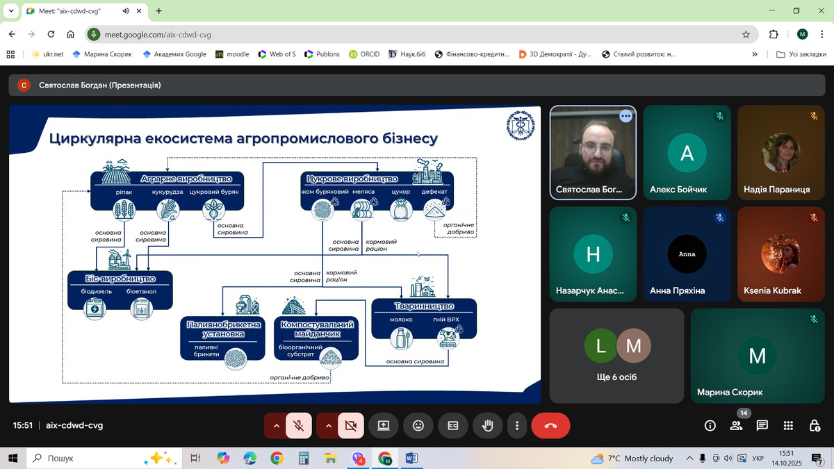 14 жовтня 2025 року на кафедрі економічної політики, маркетингу та бізнес-аналітики відбулася гостьова лекція Святослава Богдана, доктора філософії, FP&A Officer цукрового бізнесу агропромхолдингу «Укрпромінвест-Агро», на тему «Нові смисли ефективності: циркулярна логіка в бізнес-моделюванні».