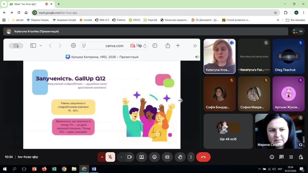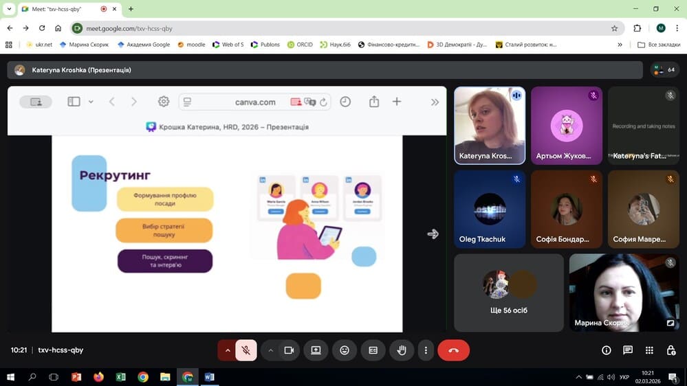 02 березня 2026 року відбулася гостьова онлайн-лекція на тему «Управління людським капіталом в невеликій компанії», організована Кафедрою економічної політики, маркетингу та бізнес-аналітики. Захід розпочався о 10:00 та об’єднав студентів, викладачів і всіх зацікавлених у сучасних підходах до управління персоналом.