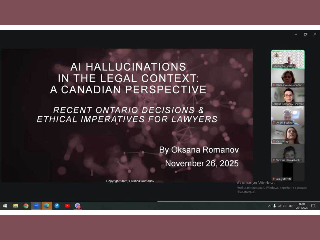 Студенти та викладачі Інституту права ДПУ зустрілися з канадською адвокаткою та колишньою урядовою прокурorkою провінції Онтаріо Оксаною Романов. Тема лекції — ШІ-галюцинації в юридичній практиці та те, як канадські суди встановлюють правила гри для нової технології.
