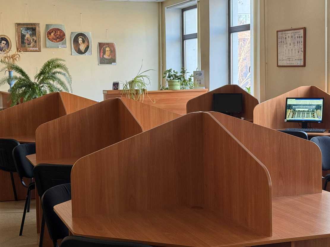 Читальний зал – це можливість комфортно й продуктивно підготуватися до занять, опрацювати складні матеріали чи завершити проєкти без турбот про розряджений ноутбук. Тут панує тиша й спокій для максимальної зосередженості на навчанні.