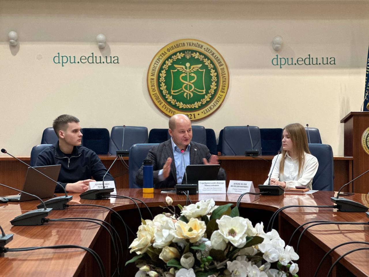 9 грудня 2025 року у Державному податковому університеті відбулася традиційна зустріч в. о. ректора Дмитра Серебрянського зі студентами. Формат залишився незмінним – відкрита розмова «без фільтрів» і можливість поставити керівникові університету будь-яке запитання.