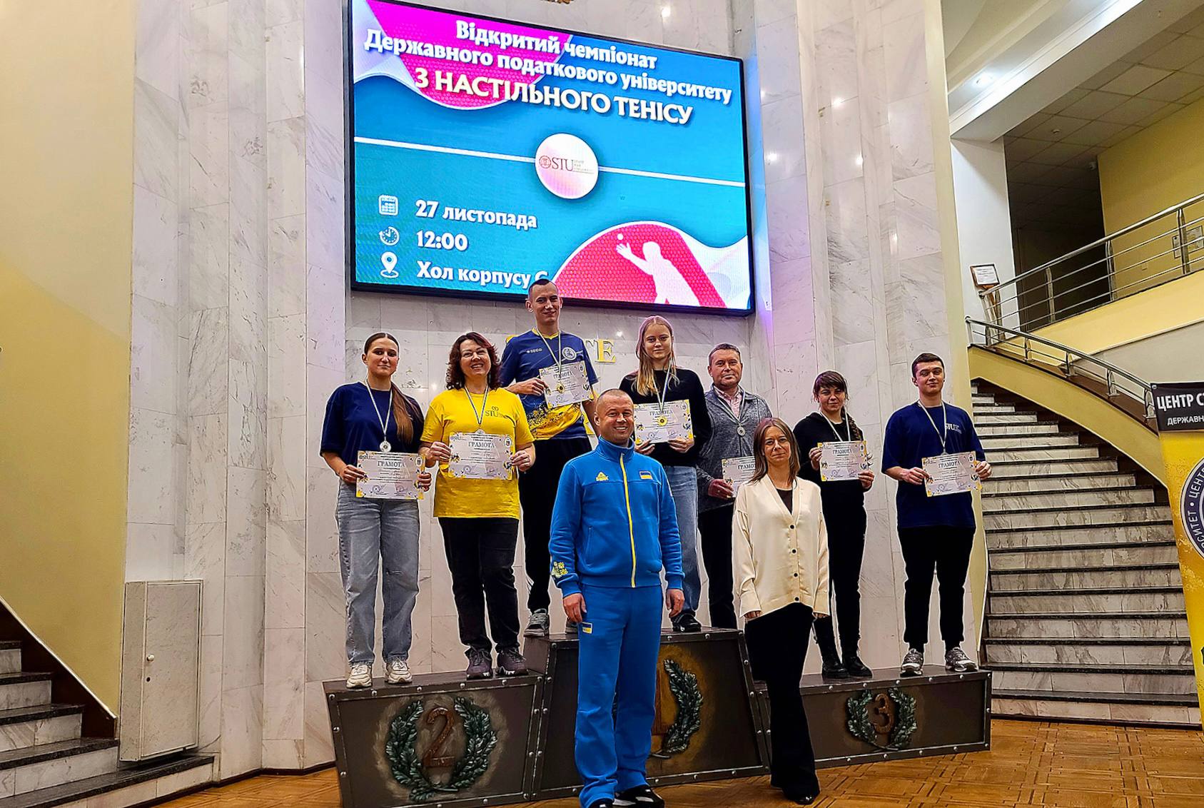 У Державному податковому університеті відбувся відкритий чемпіонат з настільного тенісу. Студенти та співробітники змагалися за звання найкращих у швидкості реакції, точності ударів та тактичному мисленні.