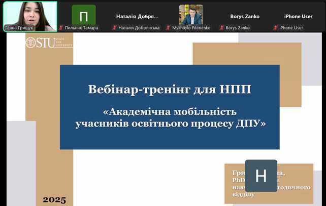 26 листопада 2025 року відбувся цікавий, а головне корисний та інформативний вебінар-тренінг для науково-педагогічних працівників Університету на тему «Академічна мобільність учасників освітнього процесу ДПУ».