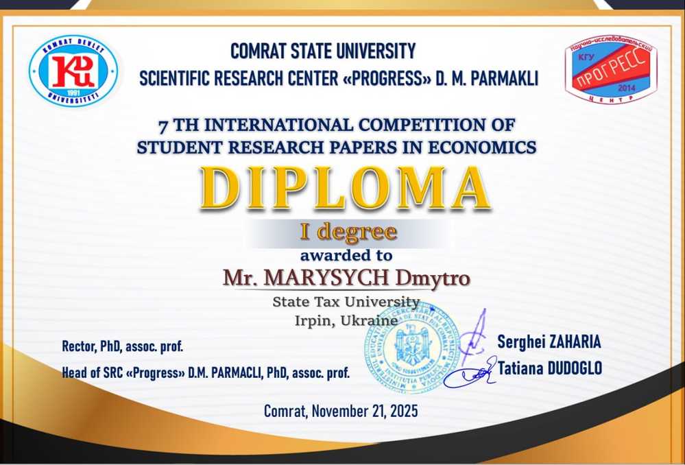 перший заступник голови наукового товариства здобувачів вищої освіти факультету податкової справи, обліку та аудиту