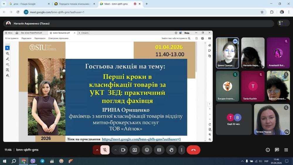 01 квітня 2026 року у межах вивчення дисципліни «Товарна номенклатура зовнішньоекономічної діяльності» відбулася змістовна та практикоорієнтована гостьова лекція на тему: «Перші кроки в класифікації т...
