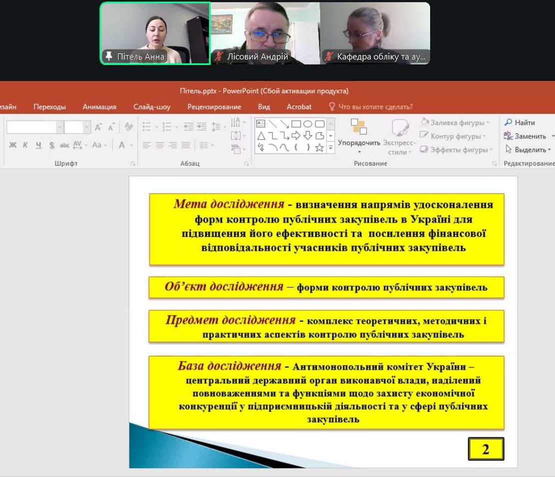 В онлайн-форматі відбувся захист кваліфікаційних робіт здобувачів вищої освіти другого (магістерського) рівня за спеціальністю 071 «Облік і оподаткування» освітньо-професійної програми «Державний ауди...