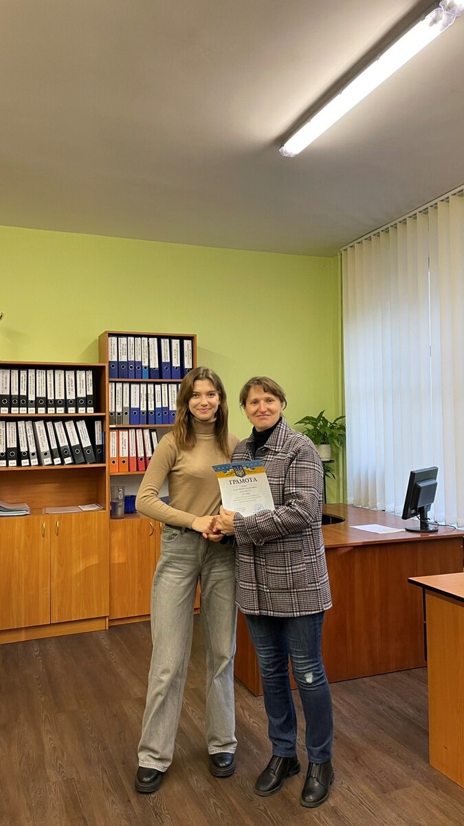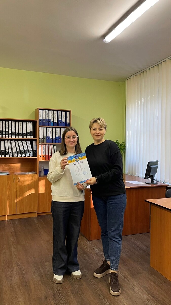 І місце - Сахно Оксана Олександрівна, група ОБП-24-1, з доповіддю «Екологічні податки як інструмент декарбонізації економіки» під науковим керівництвом канд. екон. наук, доцента кафедри адміністрування податків Тучак Т.В.
